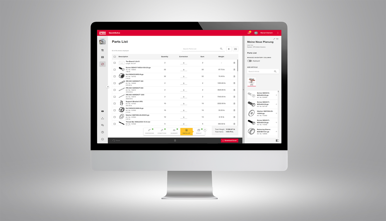 Mit PERI QuickSolve entstand schrittweise eine skalierbare Plattform, die ihren Ursprung als Planungstool für ein einzelnes Schalungssystem hatte. Heute bietet sie eine umfassende digitale Lösung für verschiedene PERI-Produkte. Planungsbüros weltweit können ihre Bauprojekte zentral anlegen und innerhalb einer vertrauten Umgebung unterschiedliche Planungen erstellen. Der große Vorteil für Bauunternehmen und Architekten: ein Projekt, eine Anwendung – mit exakt abgestimmten Produktlösungen für vielfältige Anforderungen. Dank der benutzerfreundlichen Oberfläche ist die Software ohne CAD-Kenntnisse einfach bedienbar.